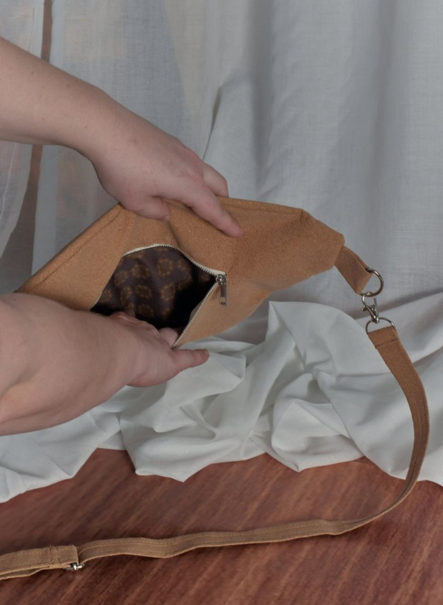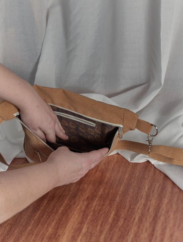 Pour cette banane "sable" , j’ai créé un sac pratique et léger, parfait pour organiser ta journée comme tu veux.